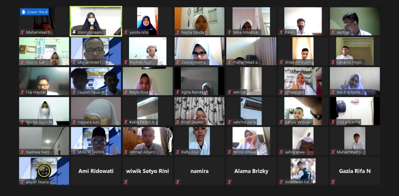 Semarang - Telah terlaksana Masa Pengenalan Lingkungan Sekolah dan Asrama (MPLSA) bagi siswa-siswi SMA IT Bina Amal Semarang Angkatan 6. MPLSA ini dilaksanakan selama 3 hari, mulai tanggal 12 - 14 Juli 2021. Pelaksanaan kegiatan ini dilakukan secara daring melalui zoom meeting sebagai upaya mendukung pogram pemerintah untuk menekan tingkat penyebaran COVID-19. Dalam sambutannya membuka kegiatan MPLSA ini, Kepala Sekolah Bapak Eka Mulyanto, S.Pi mengajak peserta didik agar menjaga produktifitas diri sebagai pemuda. Agar menjadi pemuda-pemuda yang mampu memberikan kontribusi terbaik. Kemudian diputarkan juga video sambutan dari Kepala Dinas Pendidikan dan Kebudayaan Provinsi Jawa Tengah yang memberi motivasi agar siswa tetap taat melaksanakan prokes 5M dan menjalankan program seperti yang diserukan Gubernur Jawa Tengah, eling lan ngelingke.