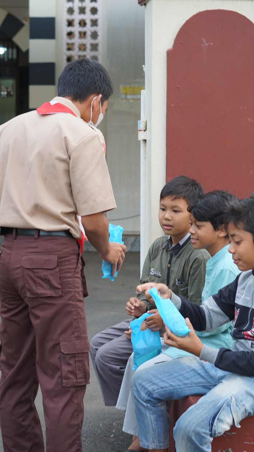 Turut mendampingi dalam kegiatan aksi sosial ini ini Kak Mahardian Muhamad Firdaus, S.Pd selaku Pembina Pramuka Ambalan SMA IT Bina Amal.