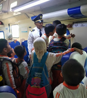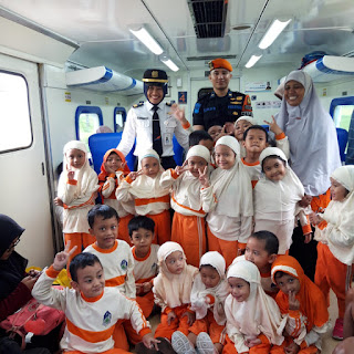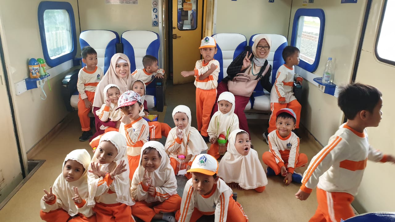 Semarang, 28 Februari 2020, Puluhan siswa KBIT-TKIT Bina Amal berkumpul di Peron Stasiun Poncol Semarang. Mereka bersiap naik kereta api menuju Stasiun Ngrombo Purwodadi.