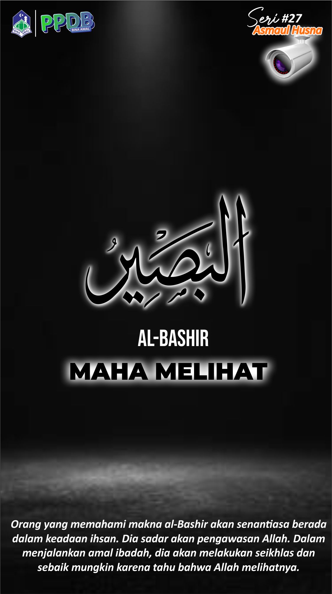 Begitu pula ketika akan melakukan perbuatan dosa, dia mengurungkan niatnya karena yakin Allah pasti melihatnya walau ia melakukannya secara sembunyi-sembunyi dari pandangan manusia. Demikian penjelasan mengenai asmaul husna dari al-Bashir.