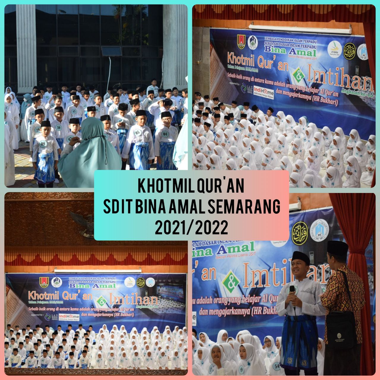 Agenda rutin ini dilaksanakan setiap satu tahun sekali. Pesertanya yaitu para siswa yang telah menyelesaikan ujian EBTAQ Metode Qiraati. “Bagi siswa-siswi yang mengikuti Khotmil Quran dan Imtihan ini tandanya mereka suudah tiga kali melalui tahapan ujian baik dari internal atau sekolah, kecamatan dan tingkat kota,” jelas Oktora Rahmat Santoso, Kepala SD IT Bina Amal.